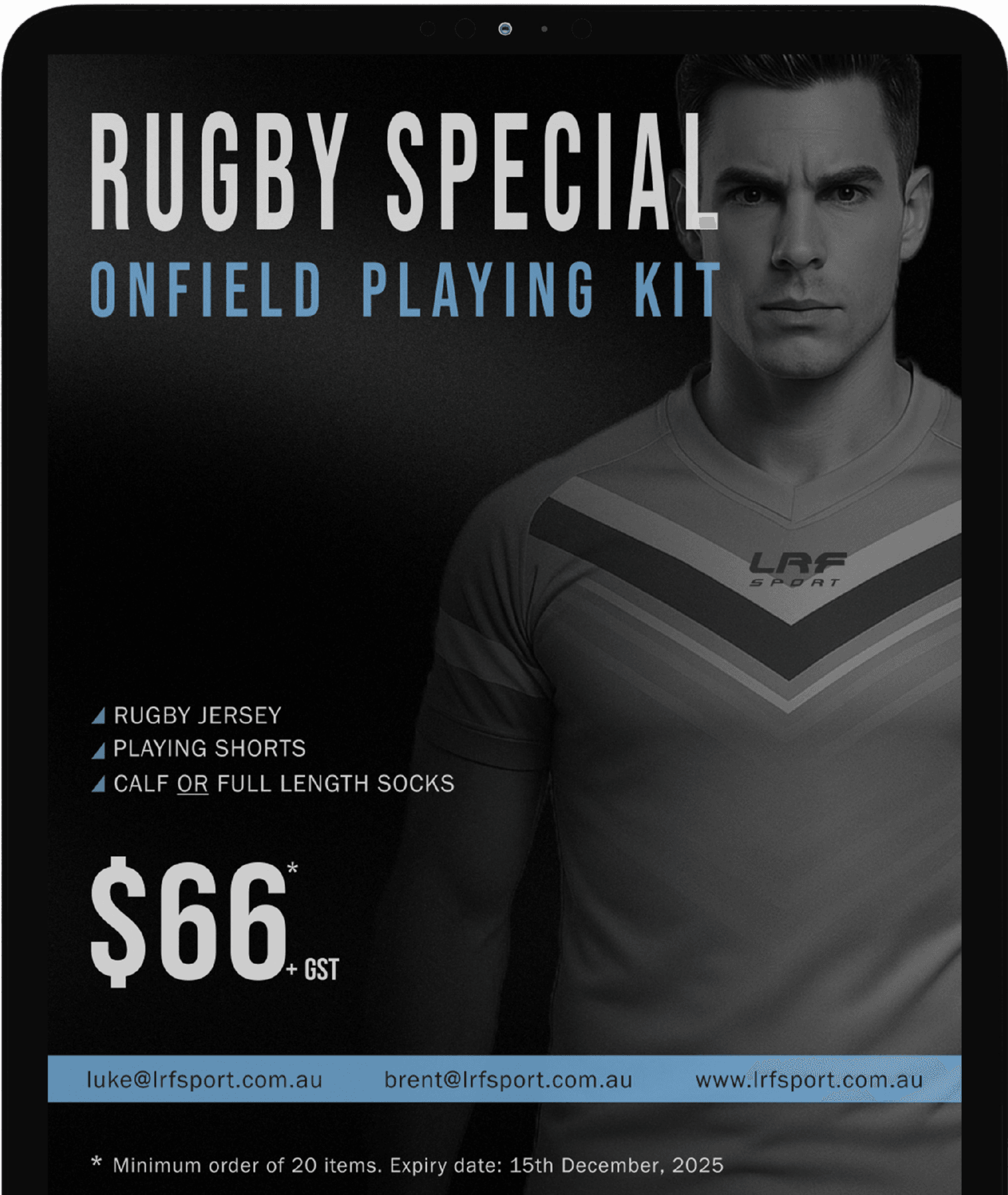 At LRF Sport, we equip champions. Our rugby teamwear is crafted with passion and precision, understanding the spirit of the game and the strength required for every play. Trust us to provide gear that matches your team's ambition.